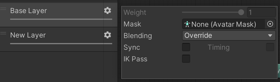 New Laye의 Weight 값을 1 정도로 주면 New Layer의 애니메이션이 Base Layer 애니메이션 위에서 재생된다.