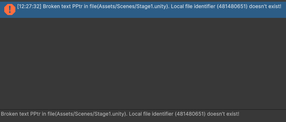 Broken text PPtr in file(Assets/Scenes/Stage1.unity). Local file identifier (481480651) doesn't exist!