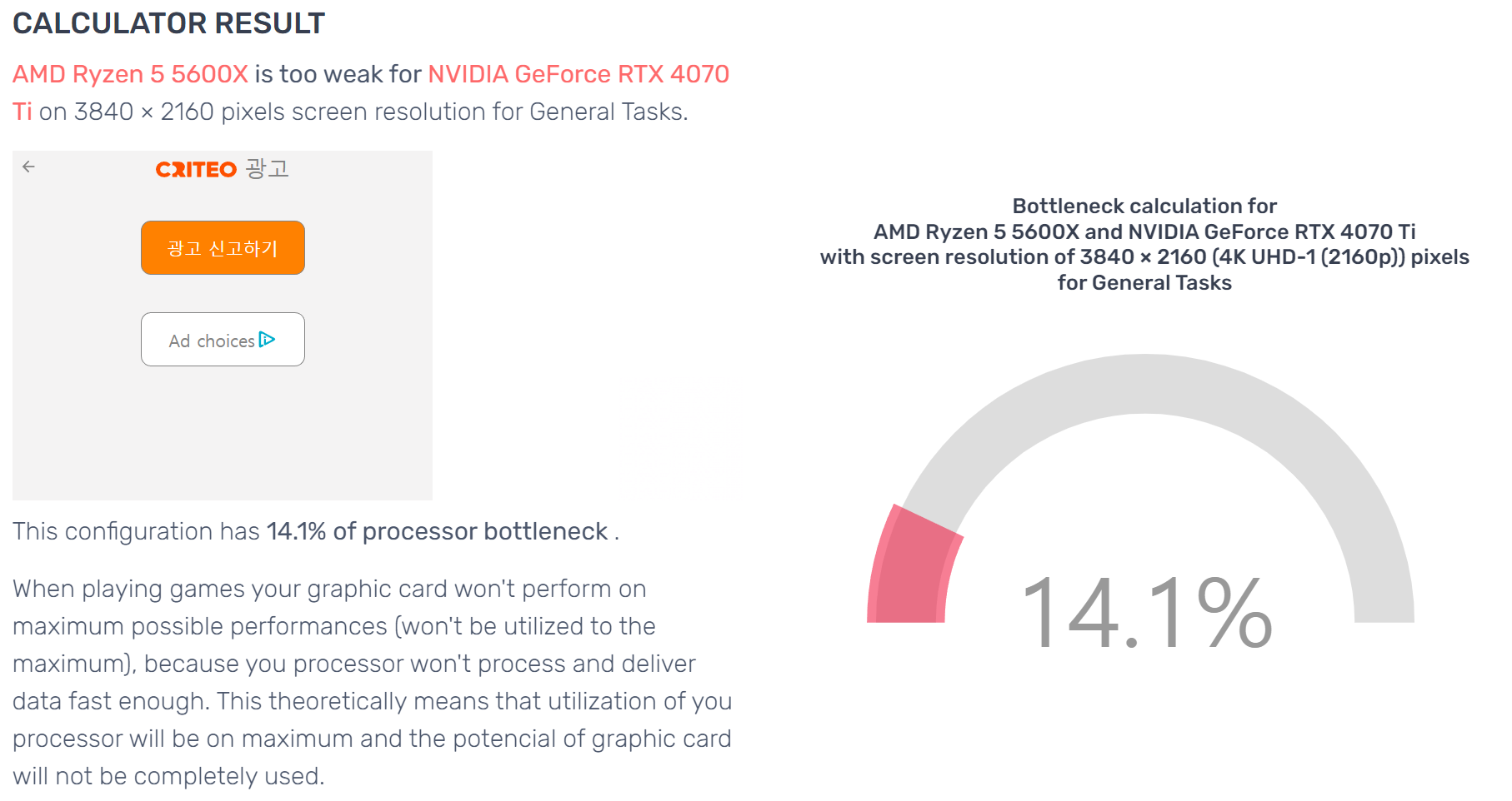 pc-builds.com의 Calculators 탭에서 CPU와 GPU 간 병목 시뮬레이션 가능