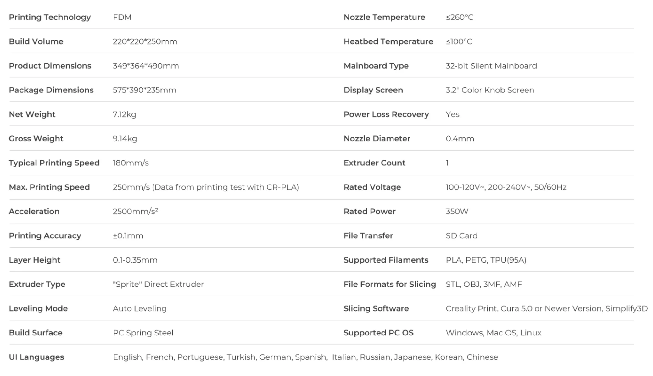 creality 크리얼리티 사의 Endor3 V3 SE는 최대 250mm/s 스피드의 준고속 프린터로