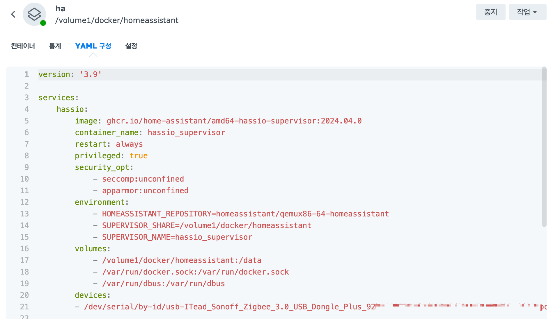 시놀로지 NAS Docker에 애드온 사용 가능한 HA(Home Assistant) 설치