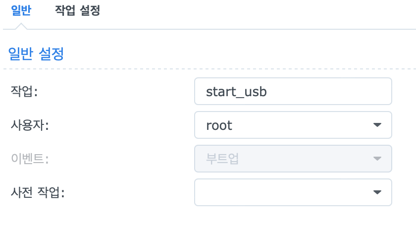 NAS DSM 화면에서 제어판 - 작업스케줄러 - 생성 - 트리거된 작업 - 사용자 정의 스크립트