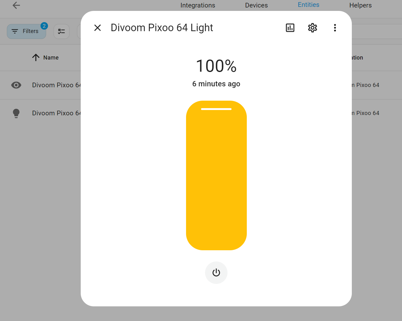 디바이스에서 Divoom Pixoo64를 선택하면 Controls - Light로 화면을 켜고 끌 수 있다.