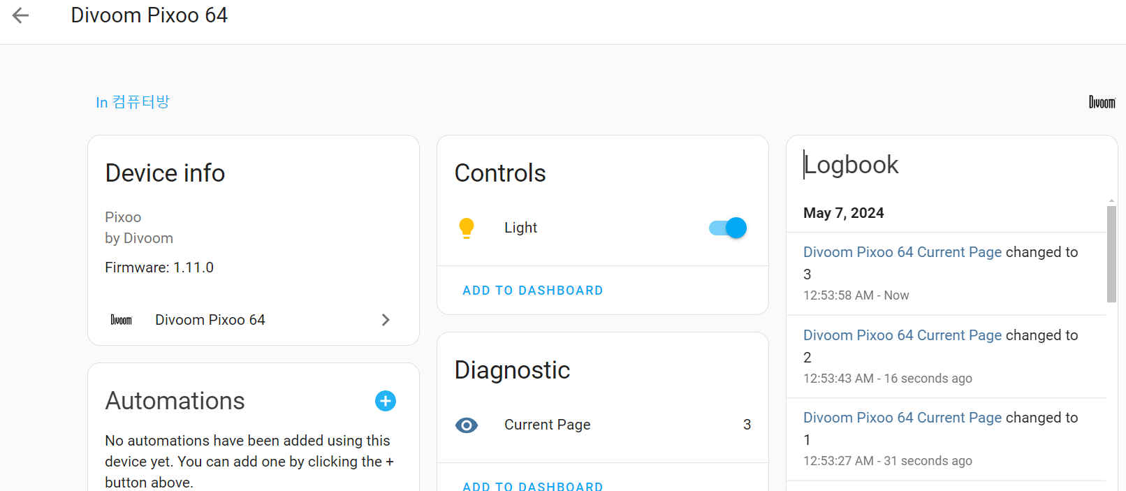 HA(Home Assistant)에 Divoom Pixoo64 픽셀 디스플레이 커스텀 사용 방법
