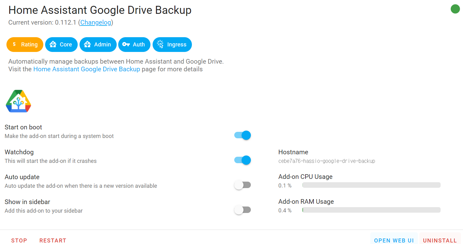 Home Assistant Google Drive Backup Repository 가 추가됨