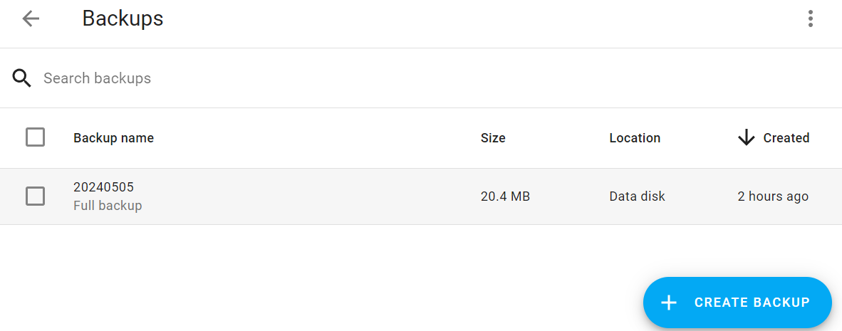 CREATE BACKUP 버튼을 눌러