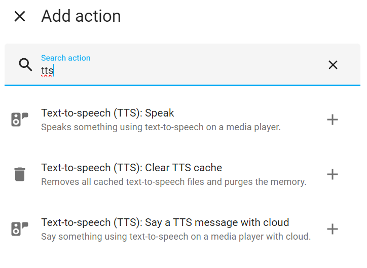 ADD Action - Text-tospeech (TTS): Speak 선택
