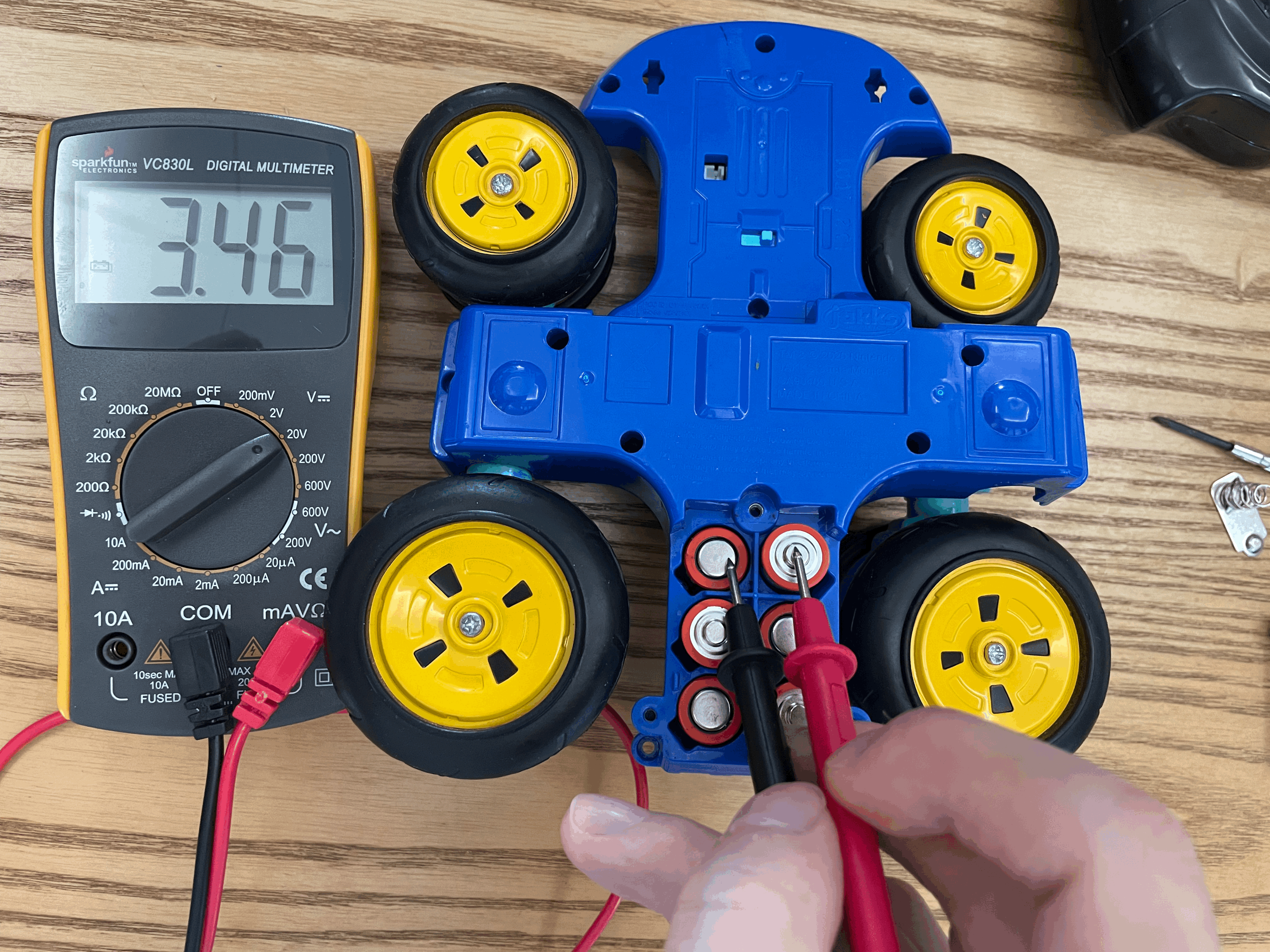 Use the multimeter to verify that the voltage of the connected battery is normal.