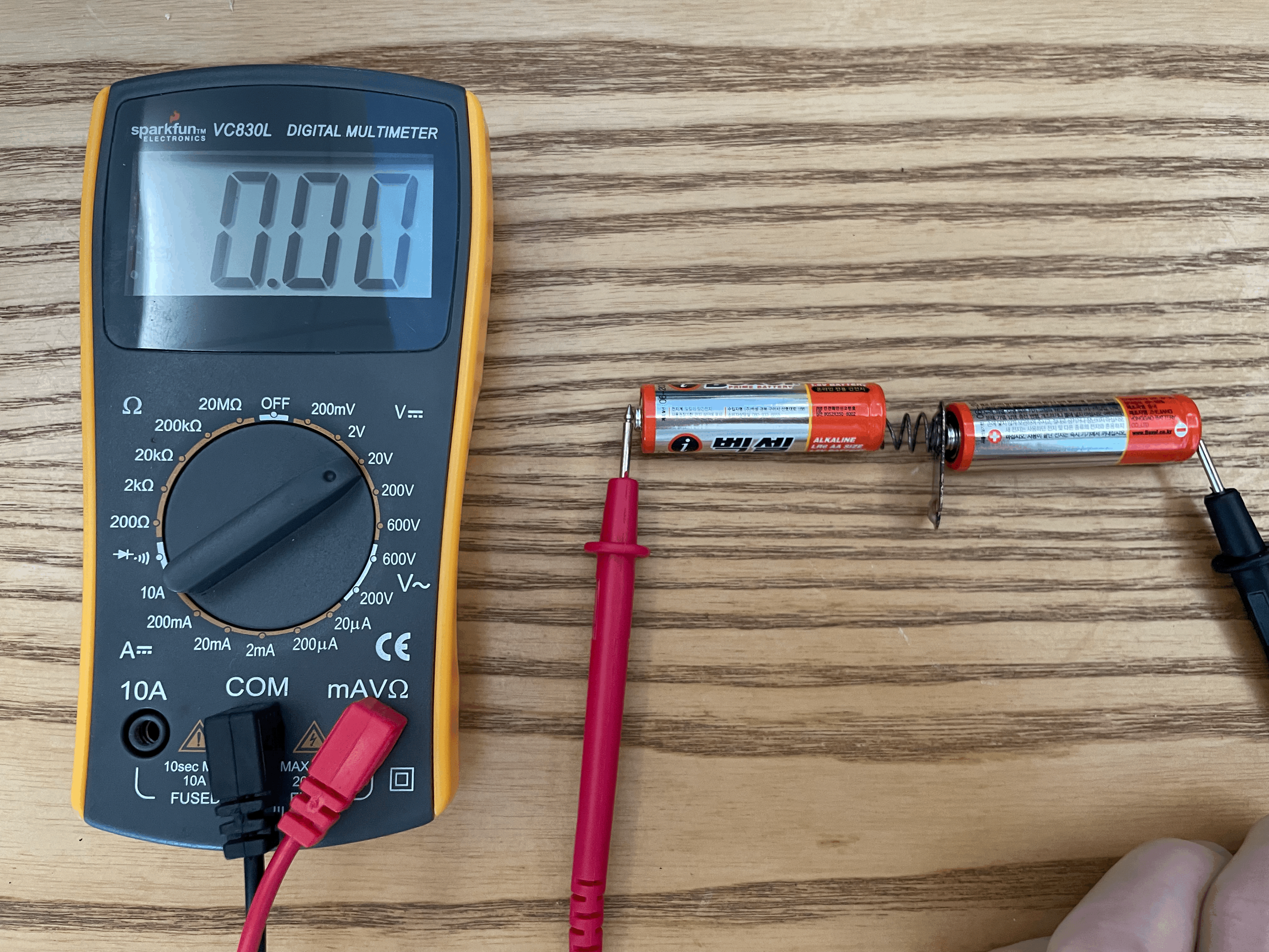 Use the multimeter to verify that the voltage of the connected battery is normal.