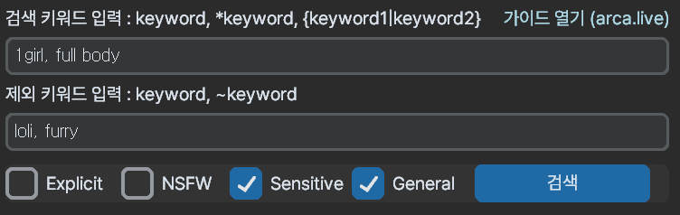 먼저 검색 키워드와 제외할 키외드를 입력하고