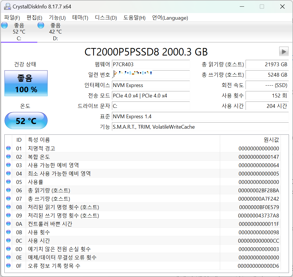 CrystalDiskInfo: 디스크 정보 확인