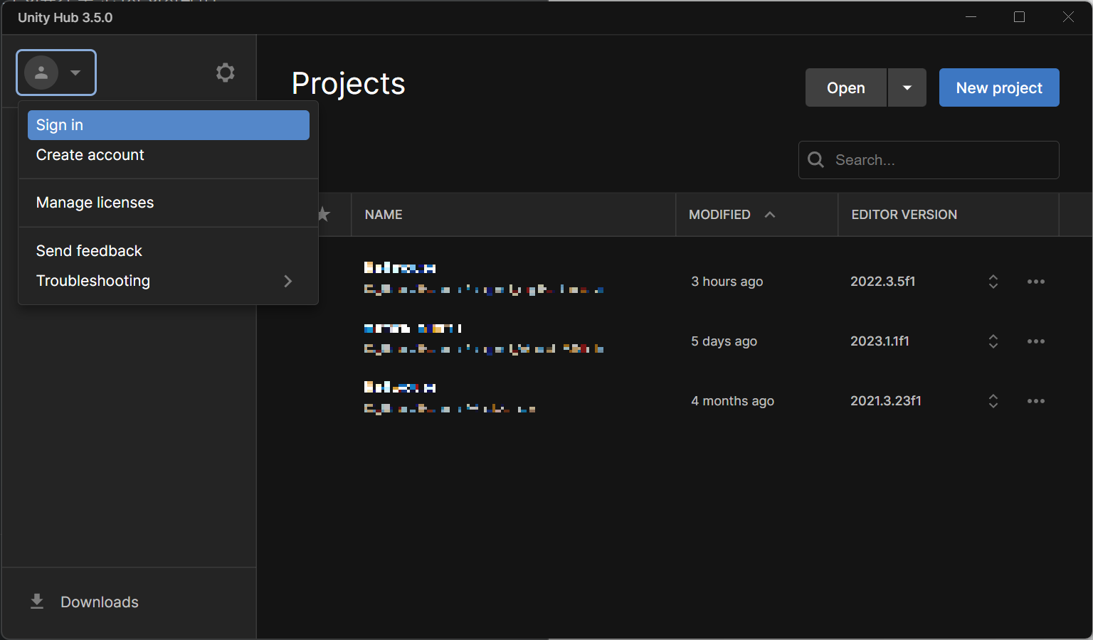 Unity Hub에서 왼쪽 상단 아이디 아이콘을 클릭, 드롭다운 메뉴에서 Log out  클릭.