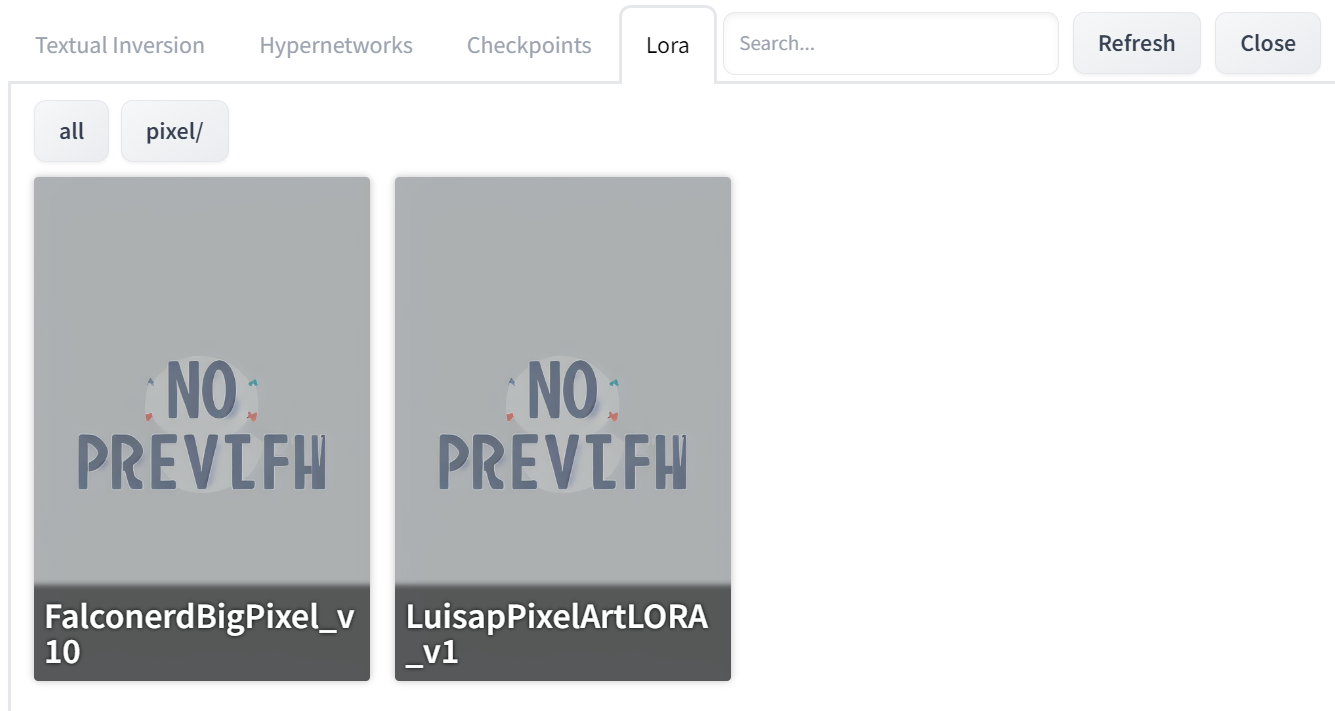 refresh 버튼을 누르면 추가한 로라가 목록에 보임