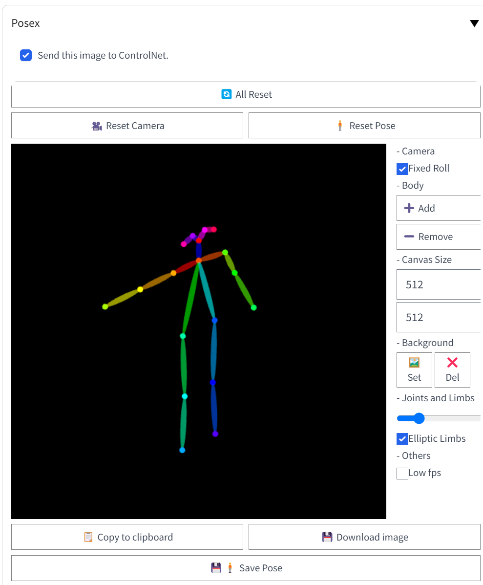 (또는 Copy to clipboard를 클릭, Ctrl + V 키로 붙여넣기 하면 Posex에서 만든 이미지가 컨트롤넷 이미지에 추가)