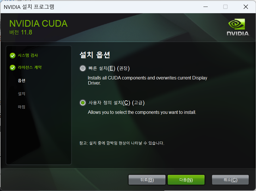 cuda 11.8 설치(xformers 컴파일 하기 위해.윈도우 버전 확인)