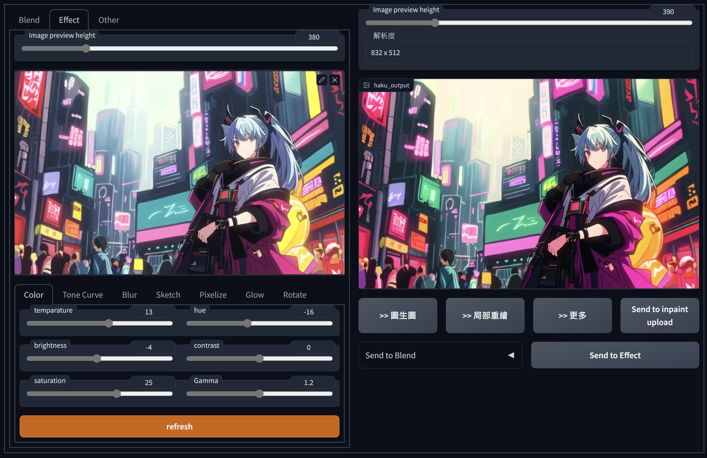 포토샵과 유사한 이미지의 레이어, 컬러, 커브, 블러, 픽셀 처리 등을 webui에서 사용할 수 있는 확장