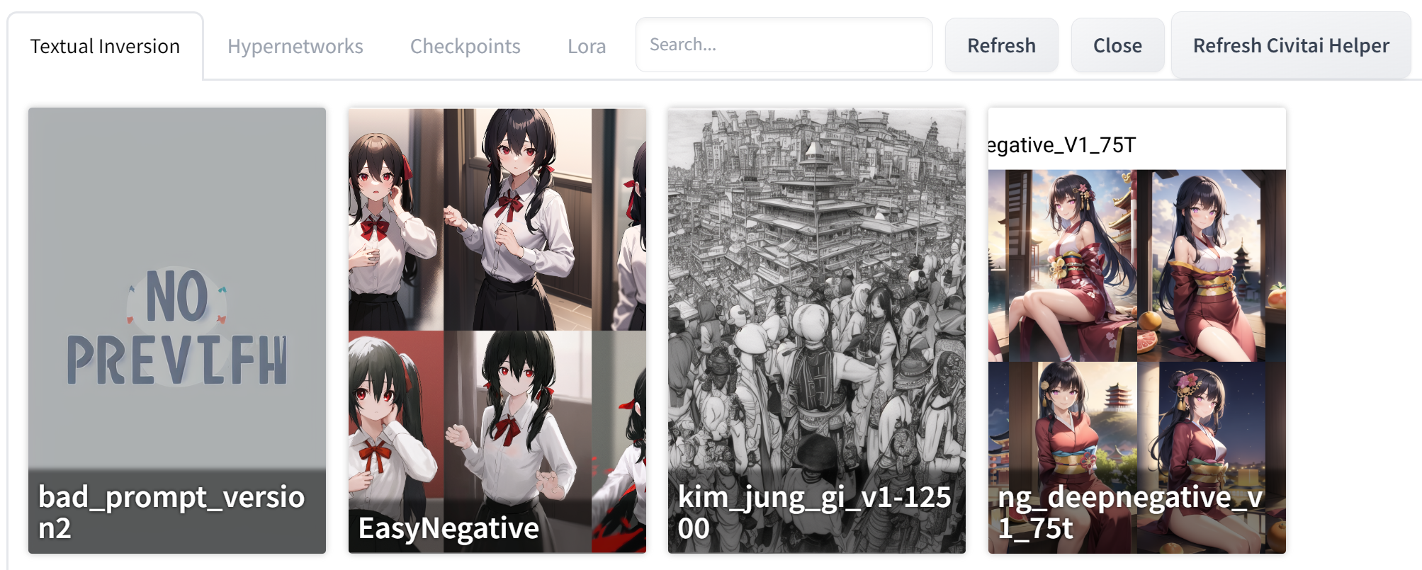 해당 버튼을 클릭하면 프리뷰가 없는 모델에 대해 Civitai 사이트에 등록된 preview가 적용된다.