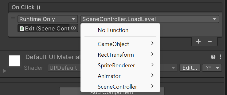 버튼 트리거 함수는 On Click() 이벤트 항목에 연결해준다.