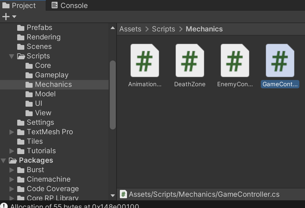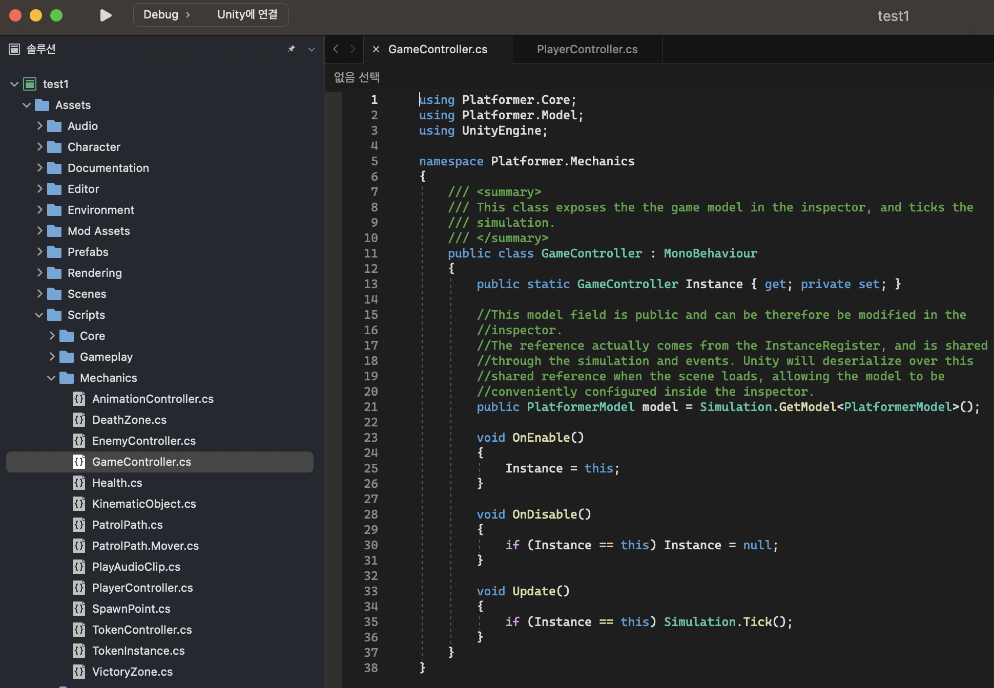 유니티에서 소스코드를 더블클릭하면 비주얼 스튜디오에서 해당 소스 파일이 열리고 코딩이 가능하다.
