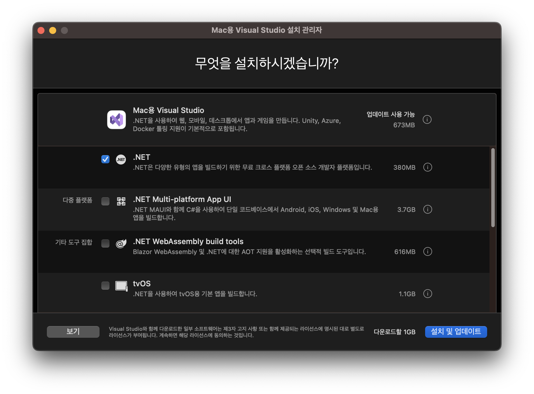맥용 비주얼 스튜디오 다운로드 및 설치