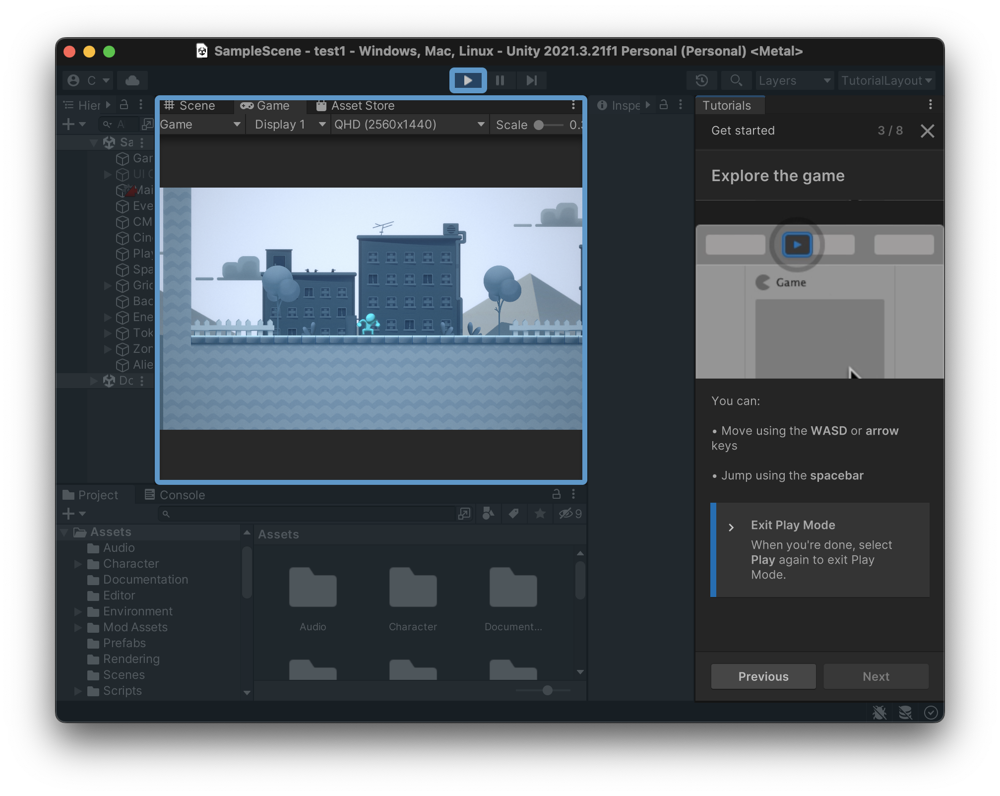 잘 동작하는지 테스트 프로젝트로 2D 플랫포머 마이크로 게임 프로젝트 생성