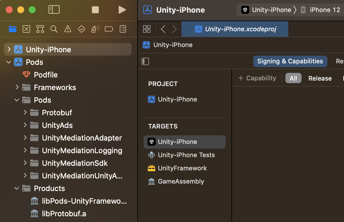 유니티에서 ios로 빌드하면 xcode 프로젝트가 생성되는데