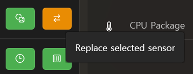 주황색 버튼을 누르면 왼쪽 센서 목록에 선택된 센서로 교체된다.