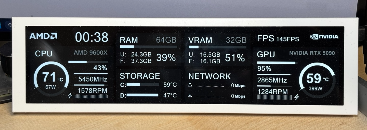 IPS C타입 보조 화면, 동적 800x480 LCD 디스플레이, CPU GPU RAM HDD 모니터링, 알루미늄 케이스 포함, AIDA64, 5 인치