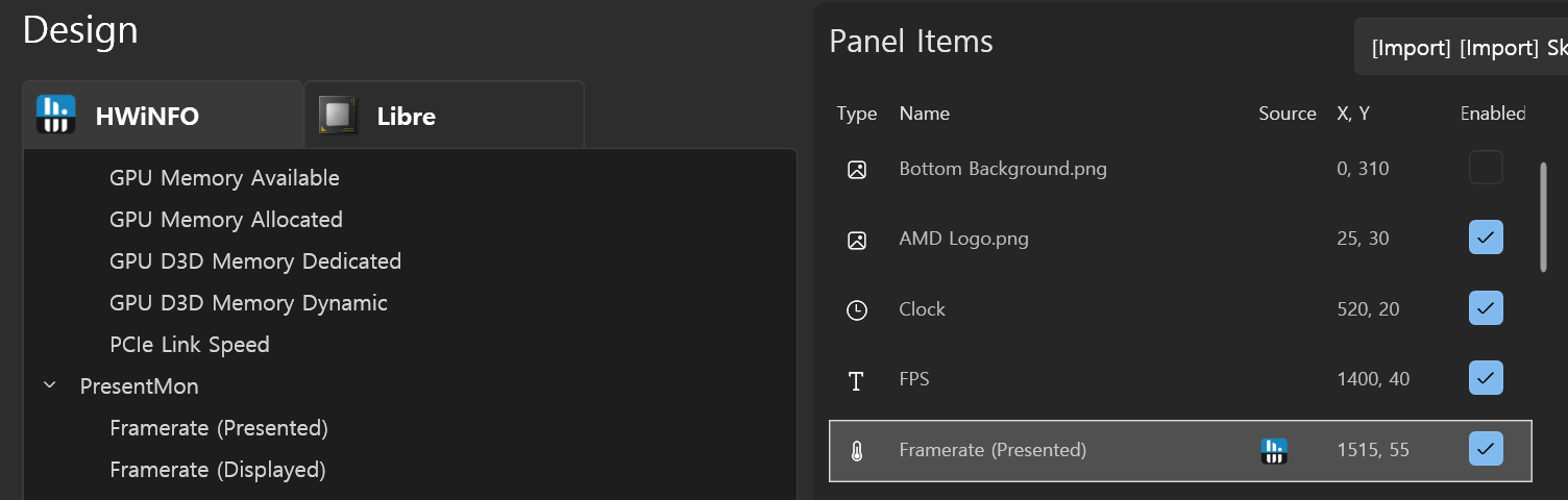 HWiNFO의 Framerate(Presented)를 선택해서 추가해준다.