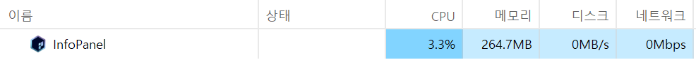 InfoPanel 프로세스의 CPU, 메모리 사용량