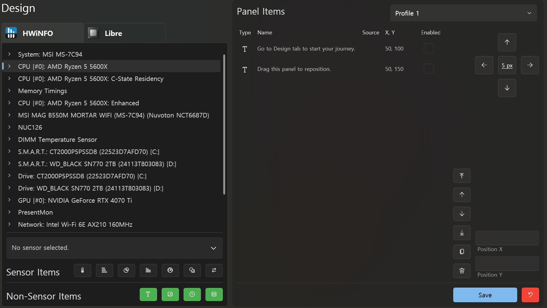 Welcome to InfoPanel. You are strongly encouraged to join our discord: https://discord.gg/cQnjdMC7Qc InfoPanel is a panel monitoring visualiser similar to Aida Sensor Panels. It reads sensors from HWiNFO and can also provide its own readings via LibreHardw