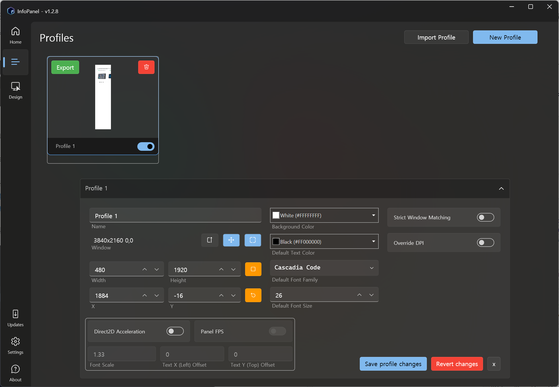 프로파일 화면에서 프로파일 이름의 오른쪽 토글 버튼을 눌러 On 시키면 PC에 미리 보기 패널이 뜬다.