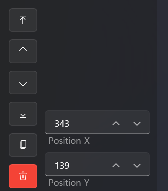패널 아이템 목록의 순서를 바꾸거나 복사, X, Y 좌표 값을 변경할 수 있다.