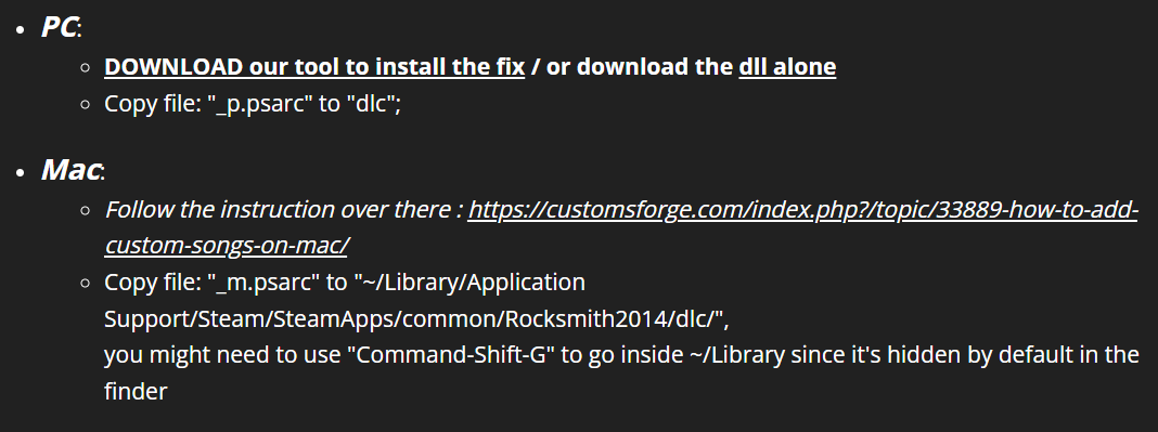 락스미스 2014 맥, 윈도우에서 커스텀 곡 CDLC 추가하기