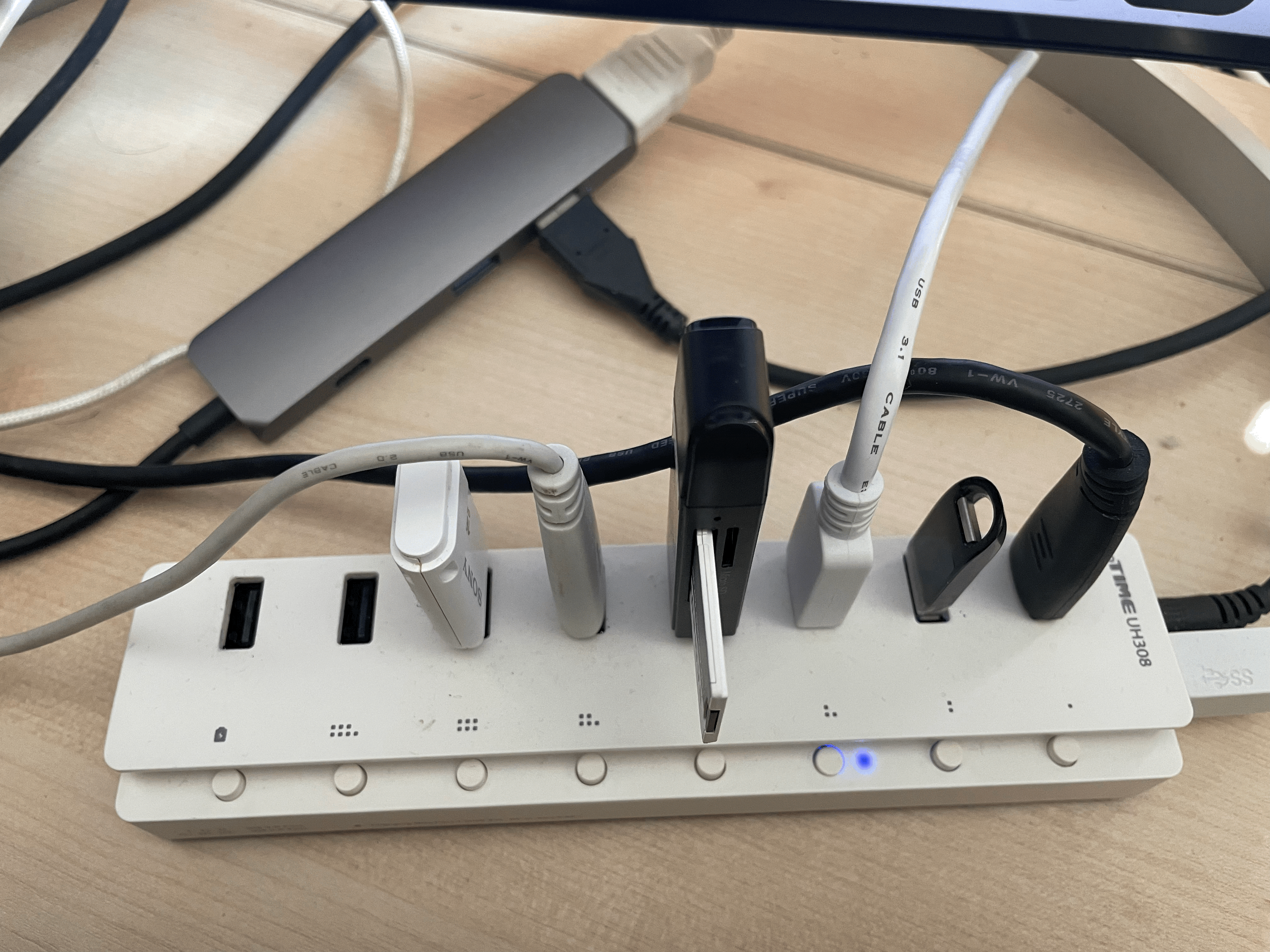 사테치(SATECHI) 멀티 허브와 아이피타임(IpTIME) 8포트 허브를 사용하고 있는 데 사용 방식이 문제였습니다.