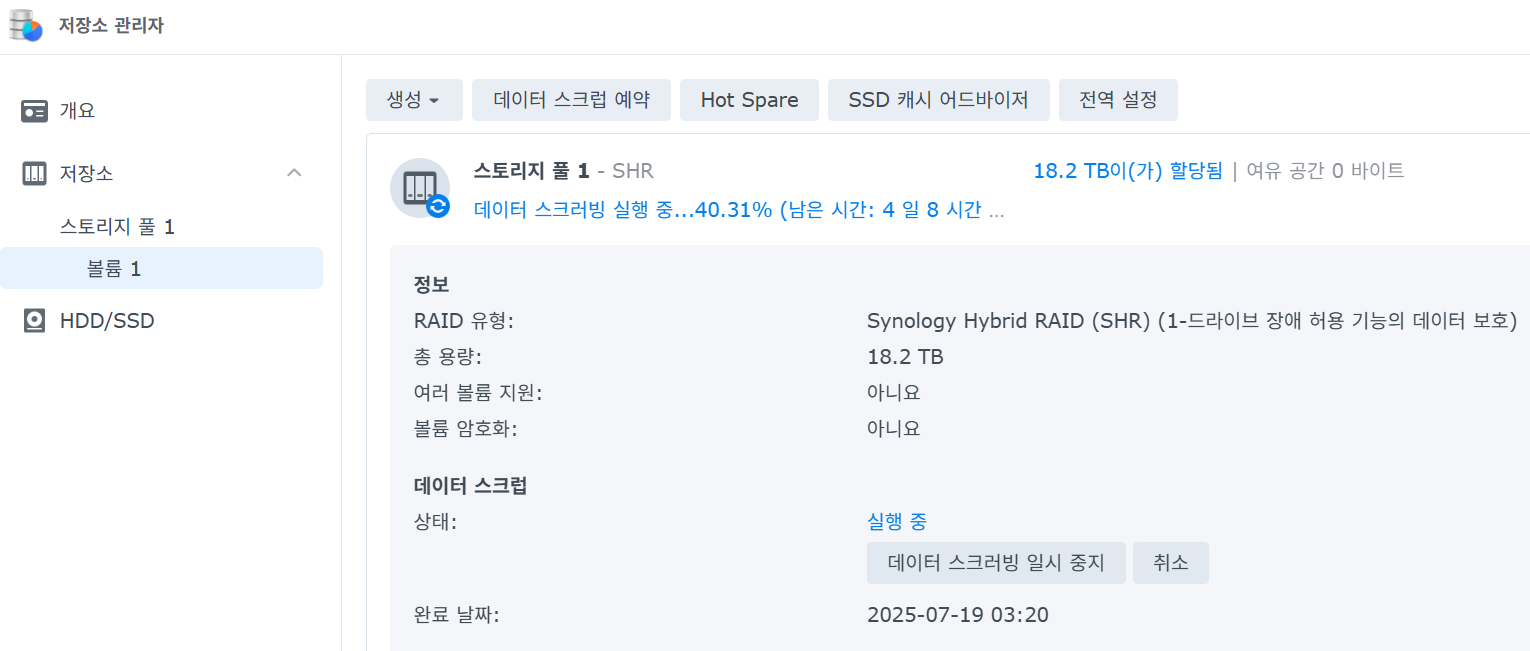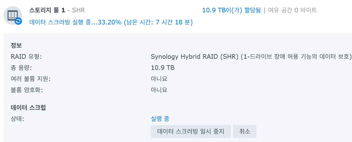 (데이터 스크러빙 관련 디스크 추가할 때마다 시간이 많이 늘어나니 아래 내용 참고)