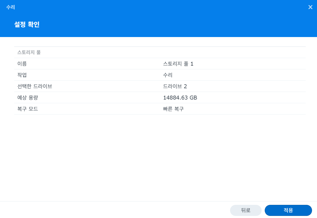 수리가 완료되면 스토리지 풀, 드라이브 상태 등이 정상인지 확인하고
