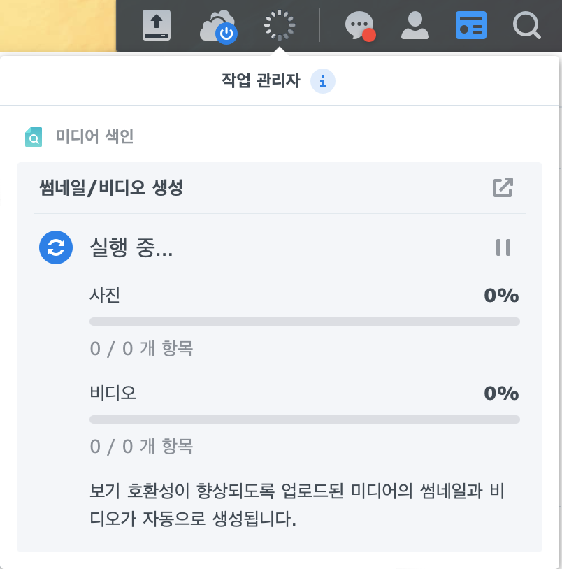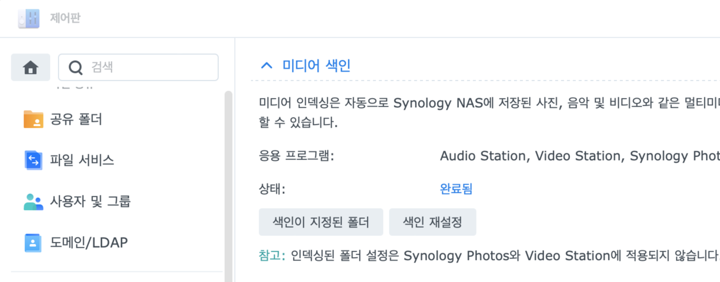 미디어 색인 상태가 완료됨으로 표시돼도 실제 색인이 계속되고 있는 경우가 있네요. DSM 7 버전을 업그레이드해서 사용 중인데 아직 좀 문제가 있어 보입니다.
