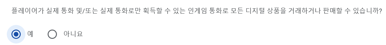 위 플레이어가 실제 통화 및/또는 실제 통화로만 획득할 수 있는 인게임 통화로 모든 디지털 상품을 거래하거나 판매할 수 있습니까? 에 예를 선택하면