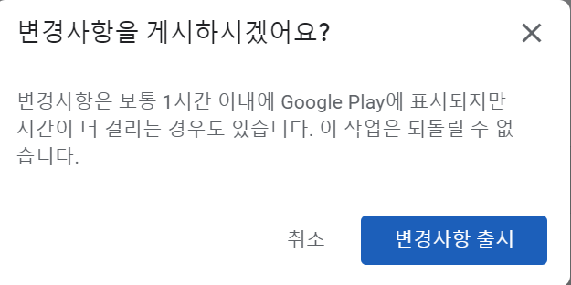 변경사항 게시로 플레이 스토어 출