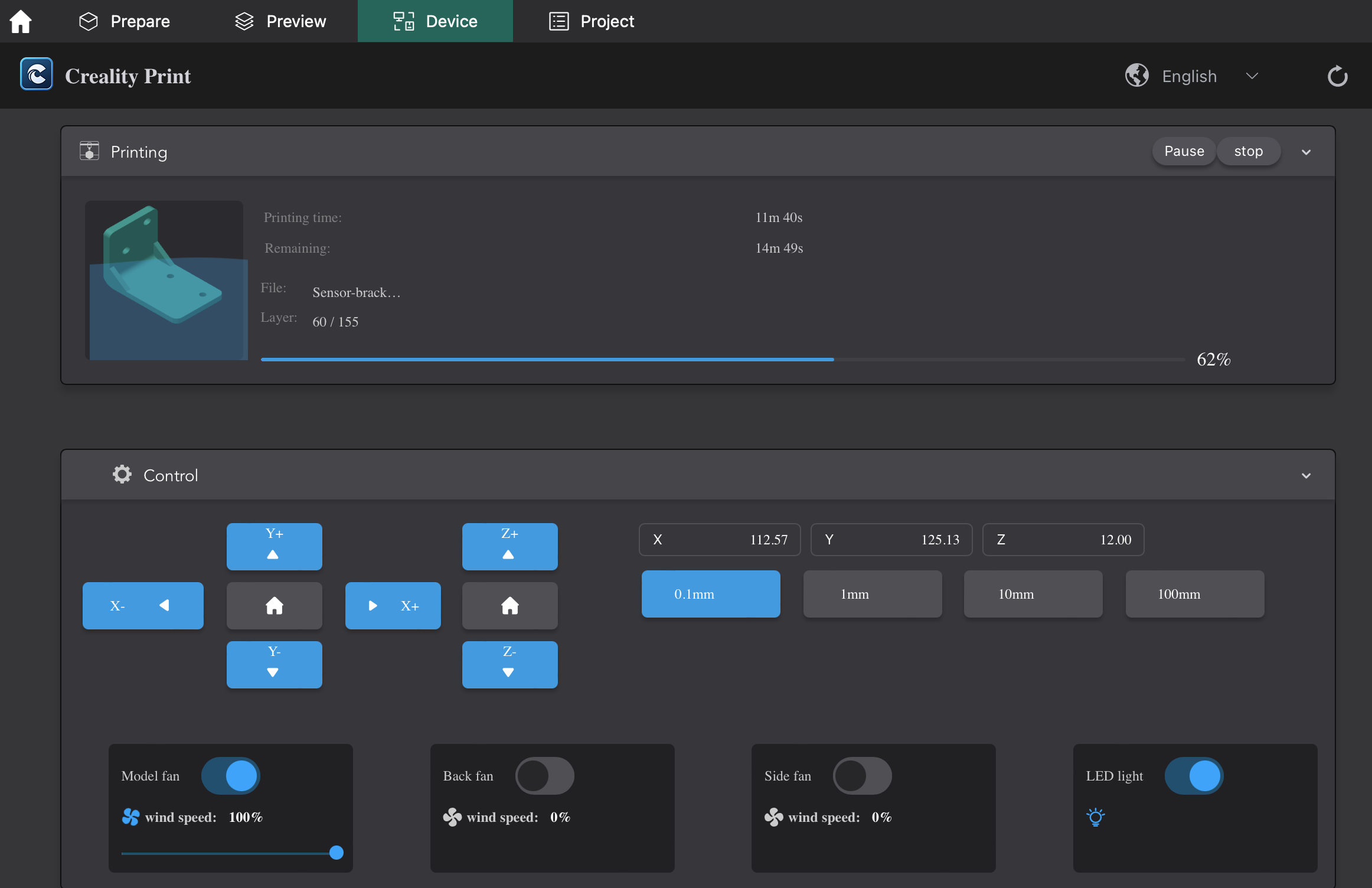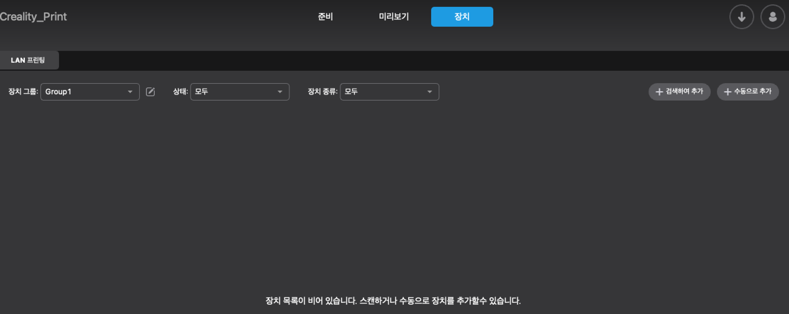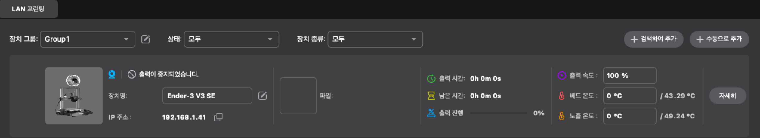 Creality Print 앱의 Divece 화면과 동일한 화면을 볼 수 있다.