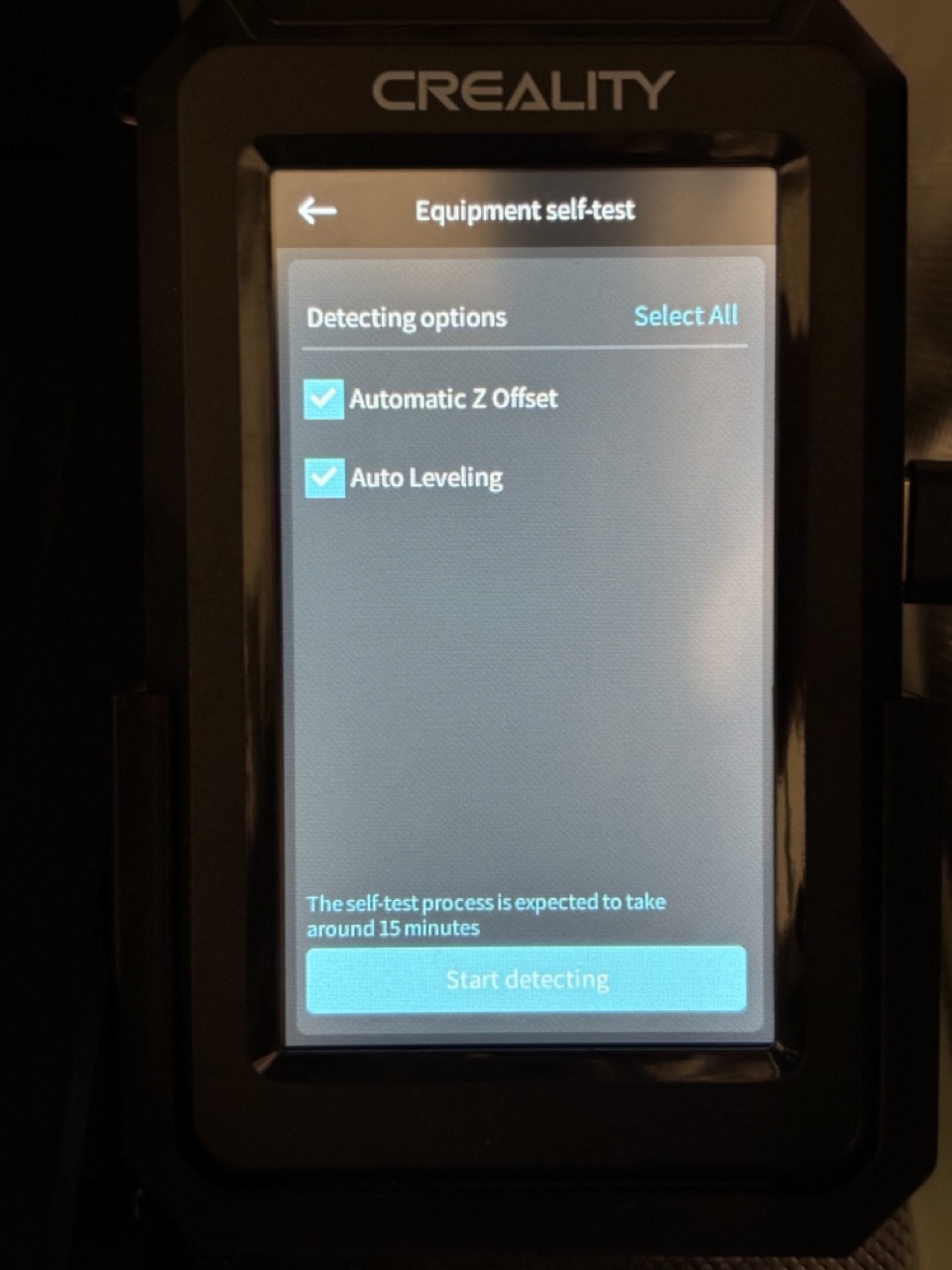 self-test process(오토 레벨링 등)를 위해 Start detecting 선택