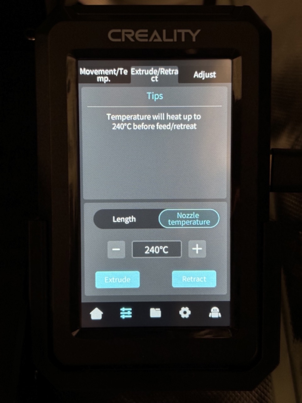 기존 패드에서 사용하던 필라멘트 삽입 및 탈거는 extrude / Retract