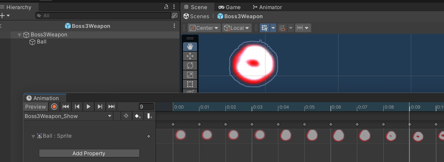 Play버튼을 누르면 Scene화면에서 애니메이션이 재생된다.