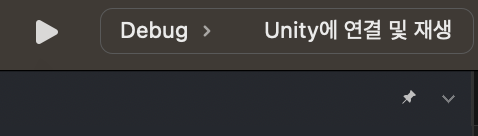 왼쪽 위에 Debug > Unity에 연결 및 재생이 선택된 상태에서