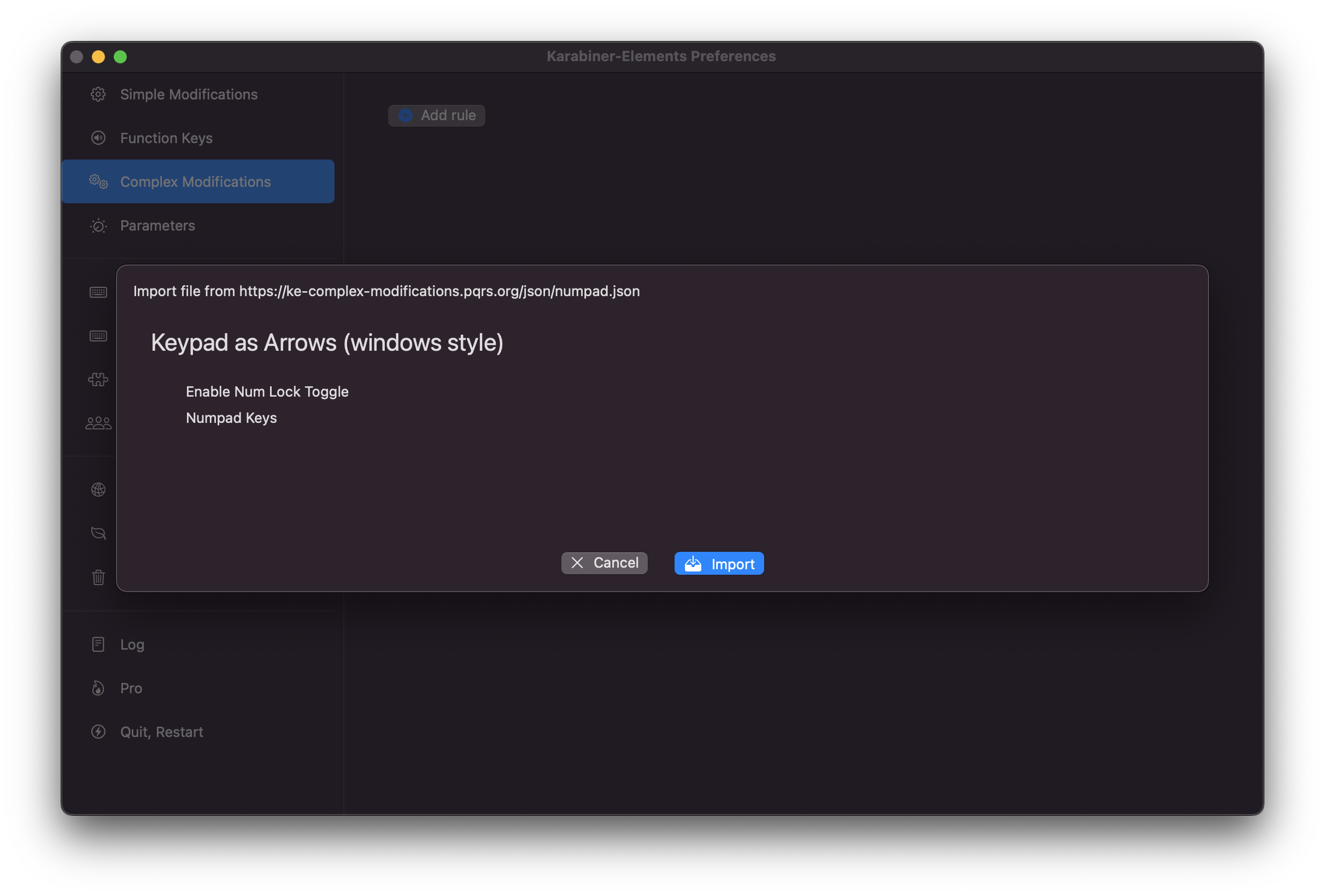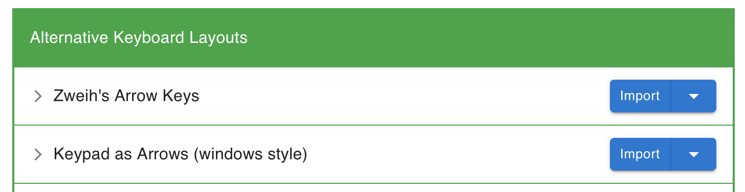 Keypad as Arrows(Windows style) 항목 Implort 버튼 클릭