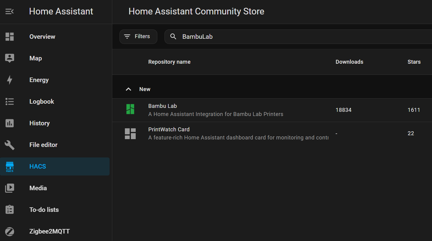 ha-bambulab git: https://github.com/greghesp/ha-bambulab/
