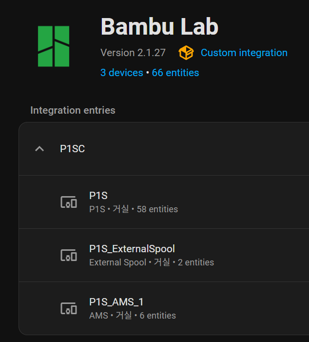HA에 뱀부랩 3D Printer(X1C, P1SC 등) 연동방법