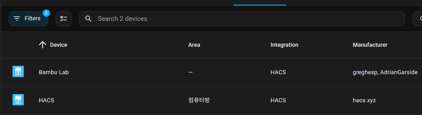 설치를 완료하면 Settings - Devices & services - HACS에 Bumbu Lab가 추가된 것을 볼 수 있다.