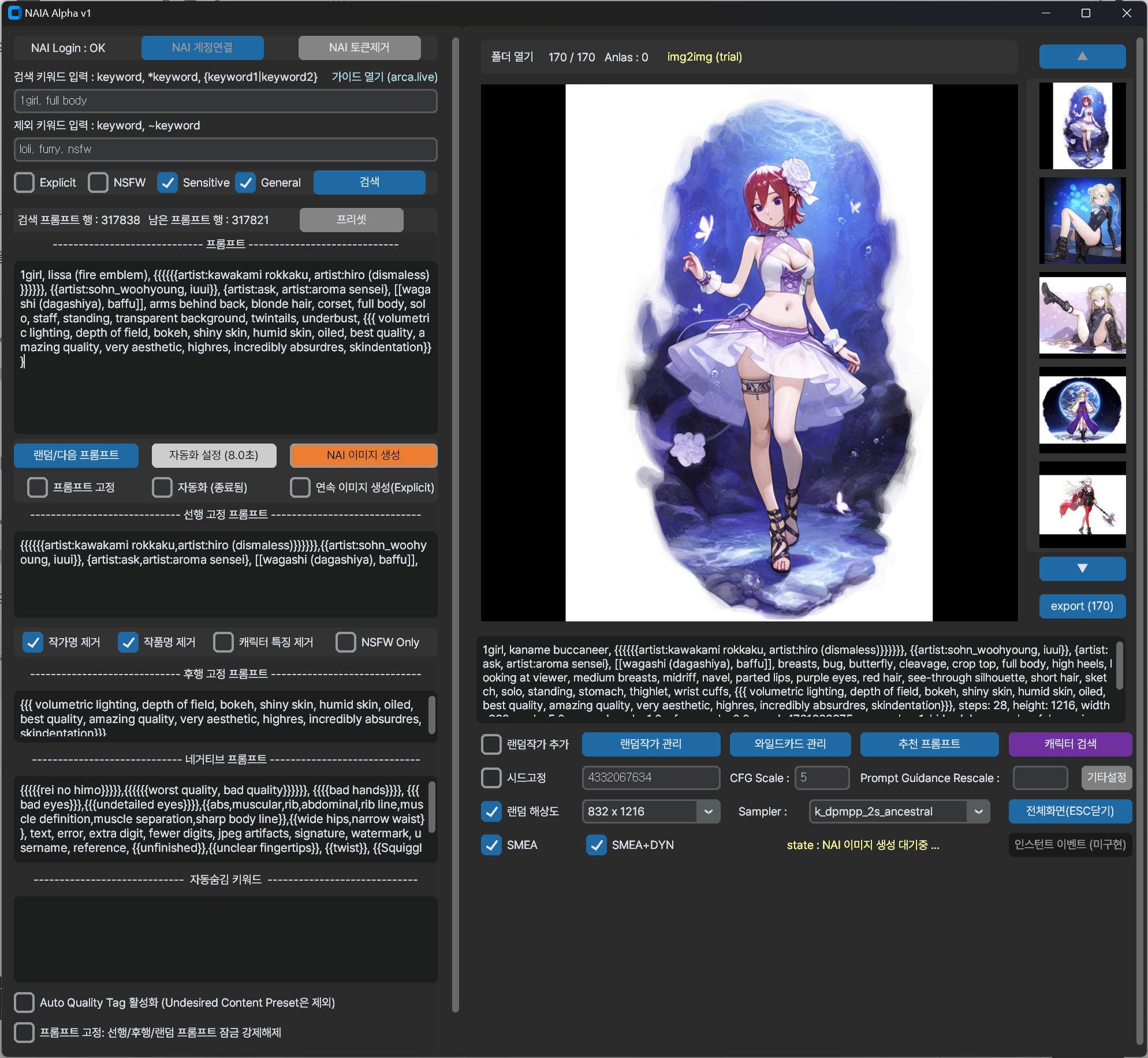 NAI 단부루 태그 랜덤 생성과 이미지 자동 생성을 가능하게 해주는 앱을 사용한다.
